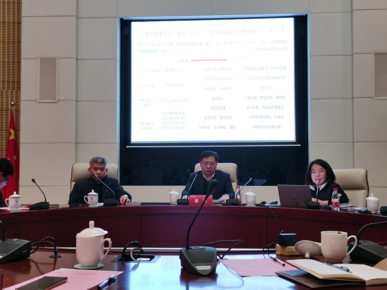 趙震強調,要牢固樹立安全發展理念,緊抓實驗室安全工作不放松,從四個方面做好2023年學校實驗室安全管理工作:一是要提高政治站位,深入學習貫徹落實習近平總書記關于安全生產的重要指示批示精神,對照教育部《高等學校實驗室安全規范》,切實落實安全責任體系、常態化管理制度和應急處置機制;二是要強化制度執行,統籌管理實驗室安全工作,把實驗室安全工作納入本單位事業發展規劃,把各項制度落實到具體崗位、具體工作、具體人員中;三是要加強教育培訓,按照“全員、全面、全程”的要求,結合自身實際情況和學科專業特點,有針對性的建立實驗室安全教育培訓與準入制度;四是要重視隱患治理,實行隱患排查、登記、報告、整改、復查的“閉環管理”,將風險控制在隱患形成前、把隱患消滅在事故發生前,堅決防范遏制安全事故發生。