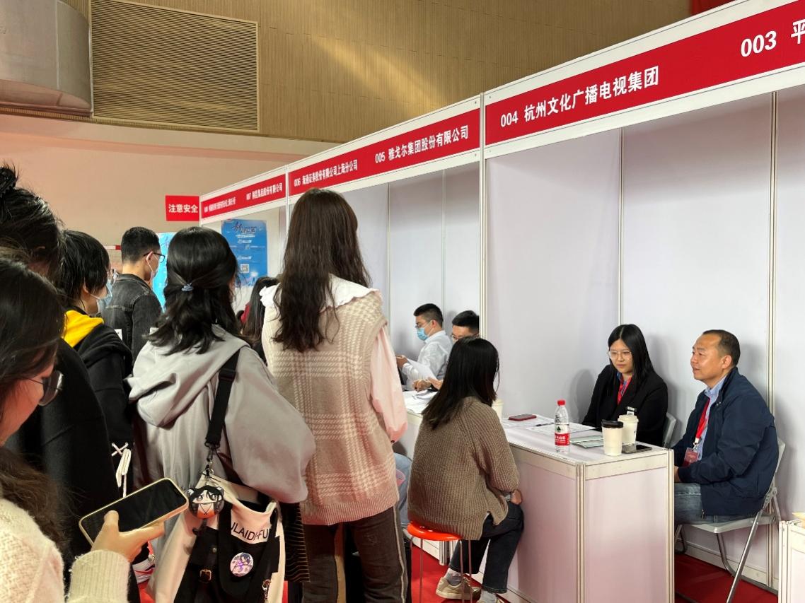 雅戈爾人力資源部胡經(jīng)理表示,此次雙選會學(xué)生熱情很高,一下午收取了60多份優(yōu)秀學(xué)生簡歷,此行收獲滿滿。杭州文廣集團展位前始終排著長隊,吸引了許多學(xué)生。招聘會結(jié)束后相關(guān)學(xué)院與專業(yè)對口的企業(yè)還開展了小型座談會,就今后如何更加深入做好人才培養(yǎng)輸送工作開展探討。