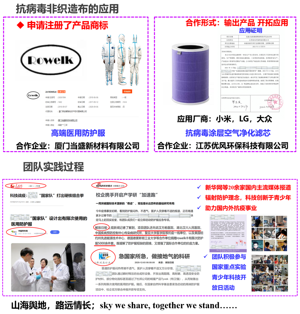 (材料科學與工程學院的“夏御(sharingprotection)——高效抗菌/抗病毒非織造布的引領者”項目)