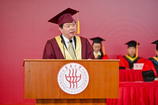 同學們,“崇德博學、礪志尚實”的校訓精神是東華賦予我們的精神烙印。“桃李春風又一年”,在你們即將奔赴新的人生之際,母校已為你們撐起遠航的桅檣。征途漫漫,惟有奮斗。今年我把“奮斗”這個主題詞贈予大家,希望你們無論何時、碰到何事都能保持踔厲奮發、勇毅前行的奮斗精神,都能走好屬于自己的奮斗之路。同學們,“千川匯海闊,風好正揚帆”,愿你們以更加寬闊的胸襟、更加淵博的學識、更加奮進的姿態去擁抱機遇與挑戰并存的明天!