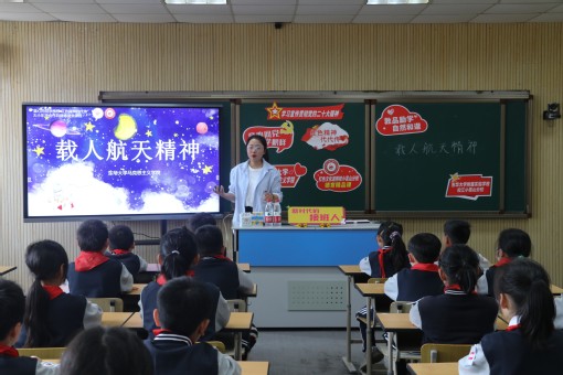 圍繞著“載人航天精神”這一主題,一幕幕歷史變革在眼前呈現,一聲聲激動人心的發射倒計時吶喊在耳畔響起,一位位先進榜樣從電視新聞中走到孩子們的心中。周若洢同學說:“馬克思主義學院的‘大姐姐’用生動易懂的話語為我們講述了新中國航天發展史,我明白了每一個人都是祖國的建設者,我們要向航天英雄們學習,能吃苦、快成長。鄧清明叔叔尤其讓我印象深刻,他是一位‘備份’宇航員,在準備了25年后終于追夢成功。飛天夢是一代代航天人乃至全體中國人共同的夢,今天的課讓我感動不已。”三(5)中隊輔導員趙向紅說:“愛國教育不能少,可是想要講好、講到孩子們的心里卻很難。這次送課進校園,確實解決了輔導員老師們的難題。馬院的研究生們充分運用自己的專業理論知識,制作適合中小學生的生動課件,深入淺出地講述載人航天精神,激發了少年兒童堅定投身強國偉業的偉大志向,非常有意義。”
