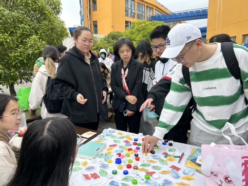 開幕式上,綠手印環保協會的志愿者們通過發放節能減排倡議書、展示用廢舊品制作的環保之樹、用礦泉水瓶蓋制作的象棋號召師生身體力行參與到環保、節能的行列中來。