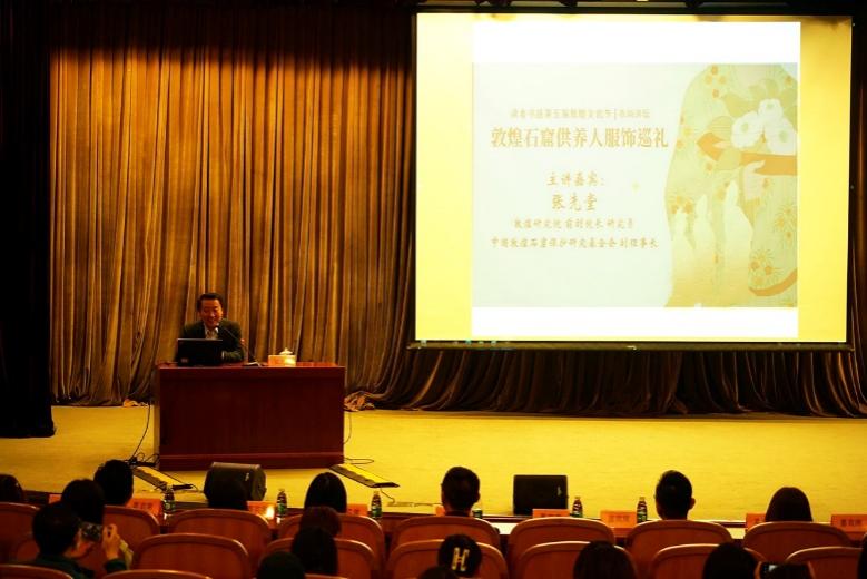 活動(dòng)中,敦煌研究院前副院長、中國敦煌吐魯番學(xué)會(huì)常務(wù)理事張先堂教授作《敦煌石窟供養(yǎng)人服飾巡禮》專題講座,從專業(yè)角度深度解讀敦煌壁畫中的供養(yǎng)人圖像,帶領(lǐng)師生感受跨越千年的國風(fēng)之美。