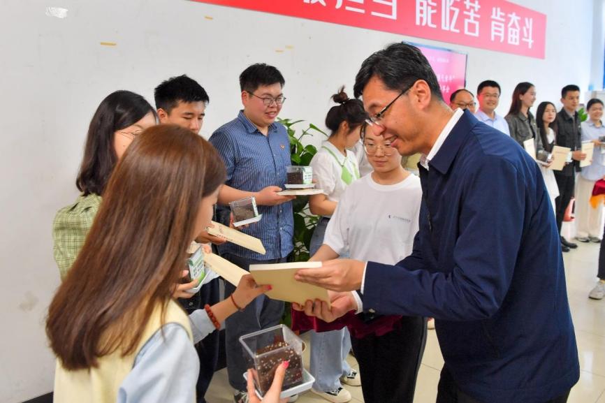 活動中,劉承功為青年師生贈送《論黨的青年工作》,鼓勵他們在學(xué)思踐悟中汲取青春奮進(jìn)力量。崔運花為青年師生贈送“青春花種”,希望他們不斷積聚能量、向陽而長,綻放青春之花。