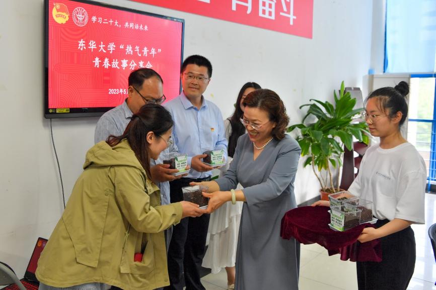 分享會上,劉承功代表學(xué)校向全體東華青年致以節(jié)日的祝福和問候,并為“熱氣青年”的青春故事點贊。他結(jié)合學(xué)習(xí)習(xí)近平總書記給中國農(nóng)業(yè)大學(xué)科技小院學(xué)生重要回信精神向廣大青年師生提出三點希望。一是要凝心鑄魂,在夯實專業(yè)知識和技能的基礎(chǔ)上,更加重視心靈的塑造,爭做“有靈魂”的卓越青年;二是要志存高遠(yuǎn),明確前進(jìn)的目標(biāo)和方向,做到向下扎根、向上生長,持之以恒、勇毅前行,努力在自己熱愛的事業(yè)里發(fā)光發(fā)熱;三是要腳踏實地,主動深入基層一線,敢于“自討苦吃”,在社會大課堂里錘煉過硬本領(lǐng),永久奮斗、團結(jié)奮斗,在平凡的崗位創(chuàng)造出不平凡的業(yè)績。劉承功寄語廣大青年師生要牢記總書記殷殷囑托,弘揚五四精神,爭當(dāng)時代先鋒,為以中國式現(xiàn)代化全面推進(jìn)中華民族偉大復(fù)興貢獻(xiàn)青春力量。
